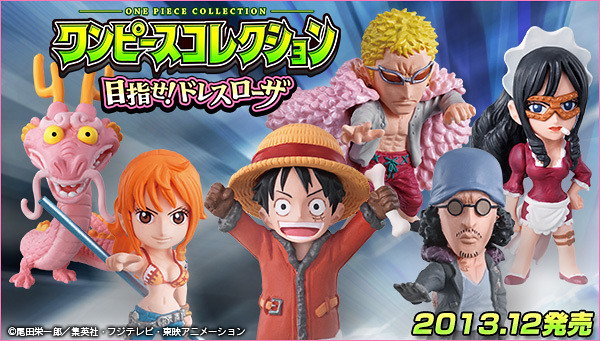玩具新聞 BANDAI 日系 海賊王 食玩 海賊王 ONE PIECE COLLECTION 「目標!德雷斯羅薩」 玩具課長 2013-11-04 15:53:53 分享 ✕ 分享 已複製網址 分享到 Facebook 分享到 LINE 分享到 Reddit 分享到 Twitter 分享到 Plurk 分享到微博 海賊王Q版食玩系列「ONE PIECE COLLECTION」最新作登場!標題名為「目標!德雷斯羅薩」 (目指せ!ドレスローザ) 這個系列出自於「龐克哈薩特篇」尾聲,接續「德雷斯羅薩篇」之間。集結了新款冬裝造型的魯夫、娜美、喬巴、香吉士,以及初次立體化、變身為龍型態的桃之助以及Baby 5;除此之外還有對峙場面的青雉以及多佛朗明哥。隱藏版則是以上兩位的特殊結冰配色,一共10個款式。ワンピースコレクション 目指せ!ドレスローザ 預計2013年12月發售,單個參考售價263¥ 玩具課長 十分老實的上班族,夜夜入眠想著的都是玩具公仔... 如果你也一樣睡不著,歡迎加入玩具人!