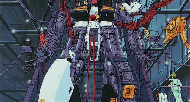 1979 年登場的初代鋼彈,動畫技術還相當原始,不足以表現複雜的機械結構。為了作畫方便,MS 的造型與線條非常簡單,連邦軍的MS 方方正正,吉翁軍的MS 圓滾滾,沒有太多結構或色塊,連小朋友都可以畫得出來。