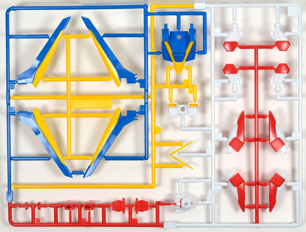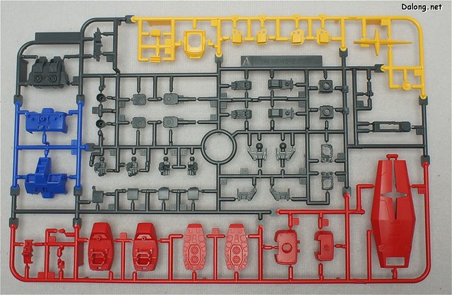 ▼ 以HG 1/144 鋼彈30 週年紀念版為例,在這一片框架上,便規劃了紅、黑、藍、黃四種不同顏色的區塊,而區塊與區塊之間,則以球型卡扣結合在一起。互相不干擾。