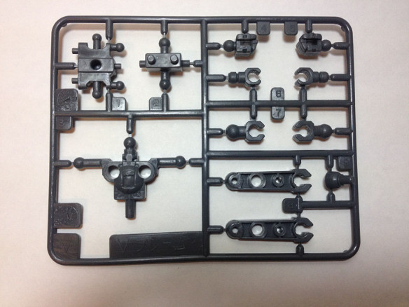 ▼ 將兩種以上不同材質的塑料在同一框架上成型,切割下來便是完整的可動機械內骨架系統,製作相當方便,和過去以PE軟膠關節的結構相比,可動度更向上提升了一階。
