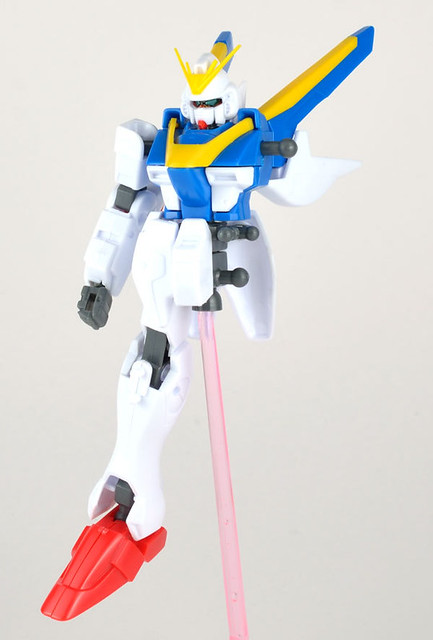 除了大尺寸的複雜化之外,小尺寸的精緻化、高可動和製程簡化則是下一個重點了~ 1993 年的V鋼彈系列中導入了V骨架(Vフレーム)系統,這是全系列都通用的內部骨架,組裝起來可是又快又簡單!~