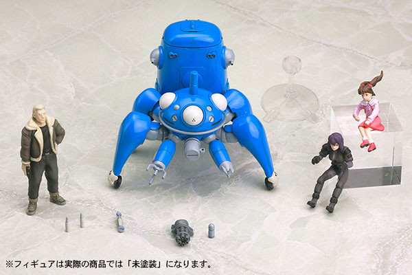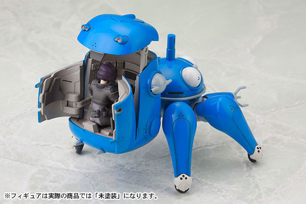 日壽屋玩具公司預計明年2014年3月推出攻殻機動隊 STAND ALONE COMPLEX タチコマWith草薙素子&バトー 1/35 プラスチックキット,經典科幻動畫攻殻機動隊當中出現的攻殻車以1/35比例呈現的組裝模型,尺寸約高6.5公分、長約為8.5公分,這次還附有草薙素子和バトー等等角色人物,不過人物需自行塗裝上色,攻殻車的後面還可以開啟,售價約3,465元日幣,喜歡攻殻機動隊的玩具人可以參考一下歐。