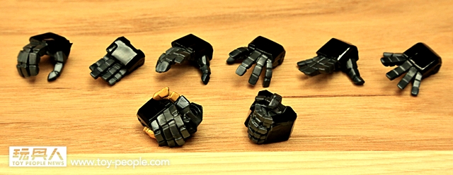 ▼ 超豐富的手部替換零件!一共有6 隻手掌可變化,讓角色的動態更加具有深度。另外還有一款特殊的雙手互扣、勇者王終極絕招 - “天堂地獄破”(ヘルアンドヘブン) 手勢;以及在最後一集片頭,新生勇者王與始源勇者王(ジェネシックガオガイガー)握手的特殊零件。