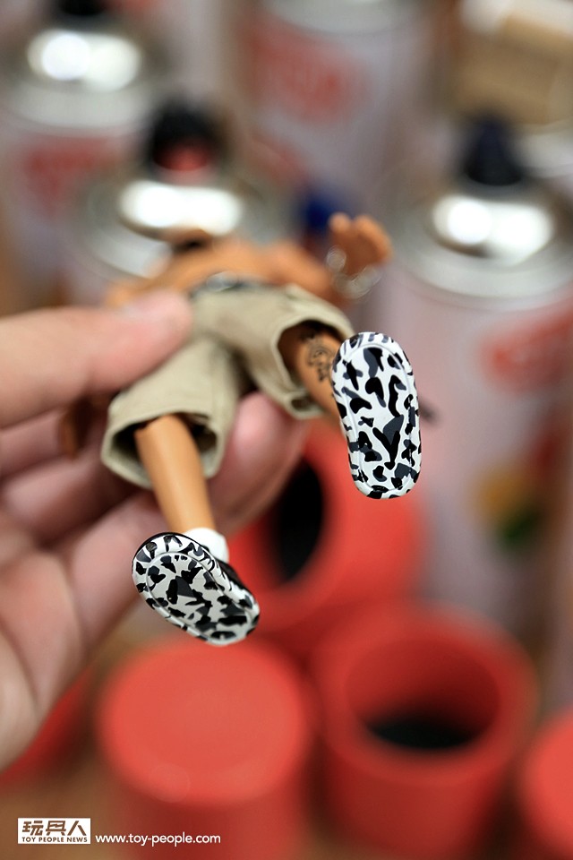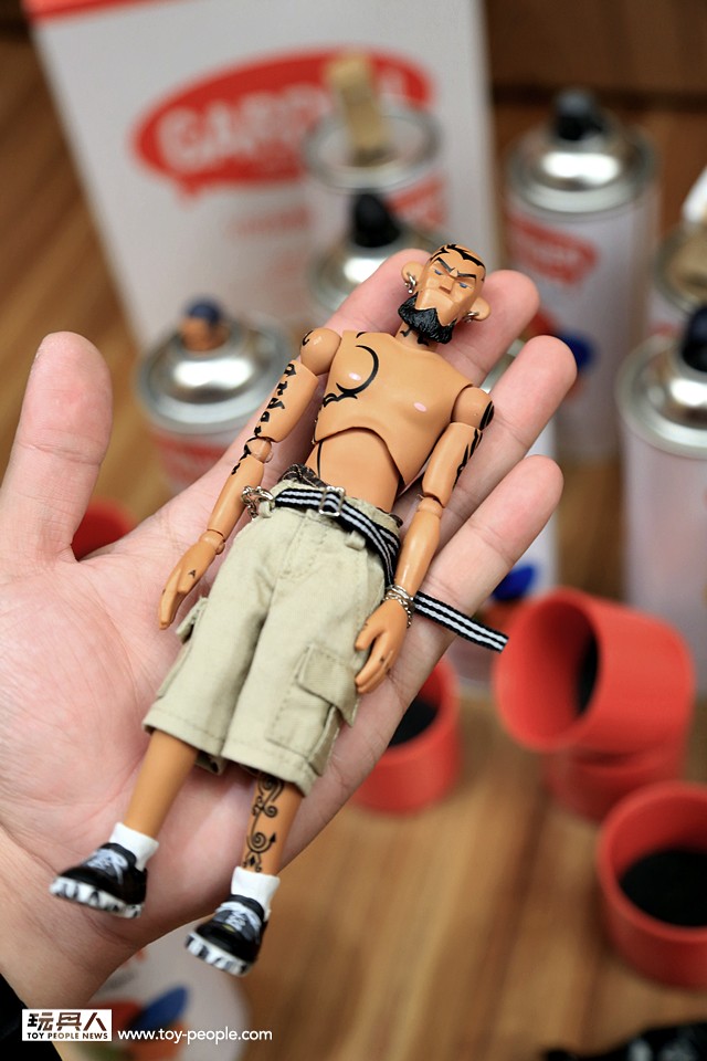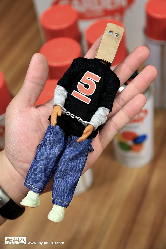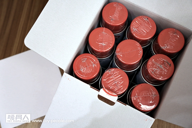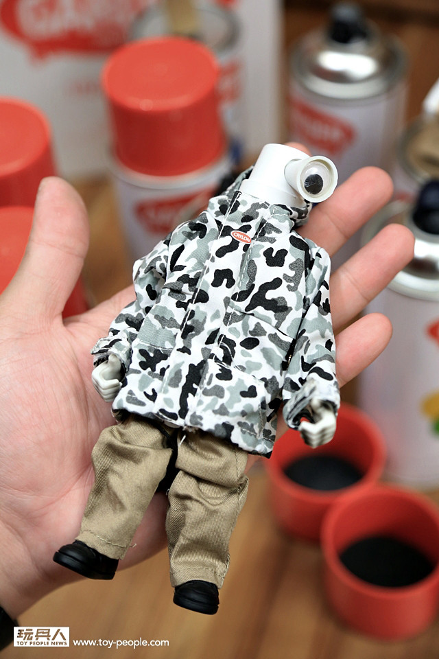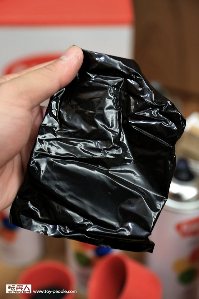 ▼ 將噴漆罐鐵蓋打開的樣子,底部連接著人偶的身體,使用海綿包裝可以完整地收納人偶。另外每個角色都有一包黑色的相對應隱藏零件,收齊全套九款就能組合出BONUS的第十款角色。