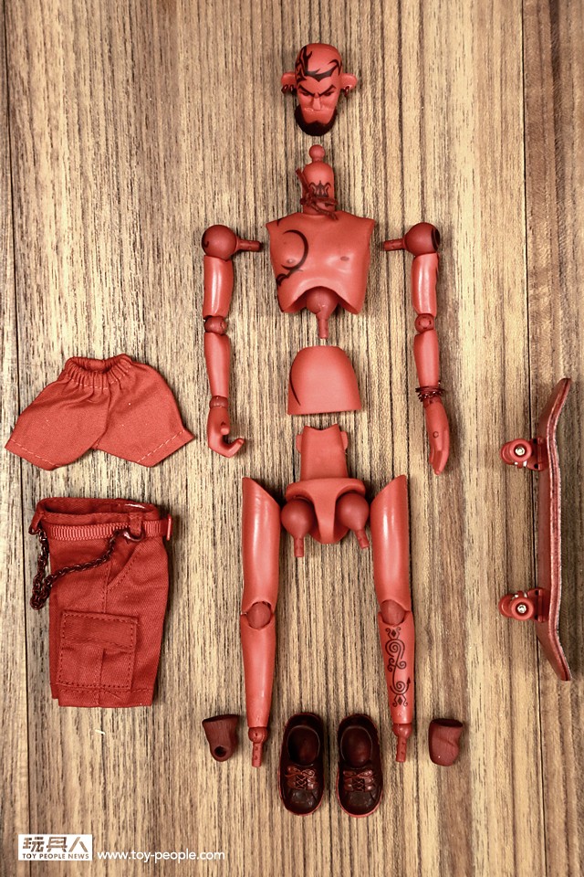 ▼ 組裝完成!這就是第一彈主視覺配色“紅色”的特殊款式TATOO,而且他還比本尊多了一塊滑板,並且右手改為手持滑板的模樣!~
