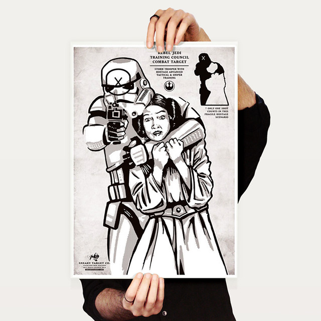 本部座落於紐西蘭奧克蘭都會區(Auckland)的「Sneaky Studios 工作室」,以製作街頭潮流服裝與Cuppa-T 起家,除了在T-Shirt 上圖案的設計融合了時尚、部落圖騰、潮流、電影角色等獨特的風格之外,Sneaky Studios 工作室所推出的「設計海報」也令小編大開眼界啊!最近,「Sneaky Studios 工作室」推出一連四款以電影星際大戰(Star Wars)為主題的造型標靶海報,包含:黑武士達斯維德(Darth Vader)、賞金獵人波巴費特(Boba Fett)、巨大的龍戈獸(Rancor)以及挾持莉亞公主的白兵(Stormtrooper with Princess Leia hostage)。