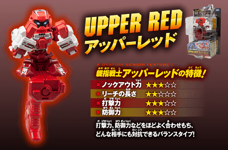 相信很多人小時候都玩過「拇指摔角」,只要兩位玩家各伸出右手互扣,接著看誰能把對方拇指壓制就是贏家。沒想到這遊戲也能被TAKARA TOMY改造成玩具商品,取名就叫做「親指戰士」!玩法類似,遊戲雙方各執一隻「親指戰士」。先將兩隻親指戰士的台座連結,皆下來比賽開始時,玩家可以透過拇指操作,讓親指戰士作出攻擊、防禦、迴轉等等動作。當攻擊累積一定強度時,就有機會將對方的親指戰士打飛出去喔!玩法相當有創意而且不需電池。目前推出角色有「UPPER RED」以及「PUSH BLUE」兩款,每隻戰士售價1260圓,提供給大家參考!