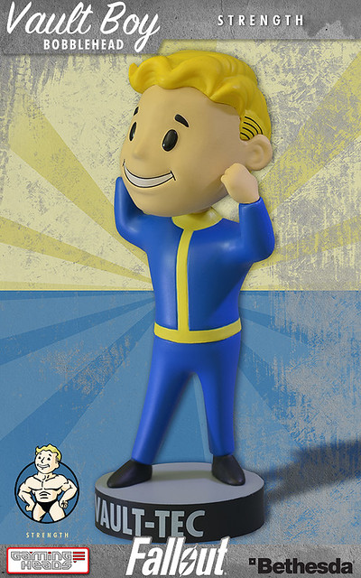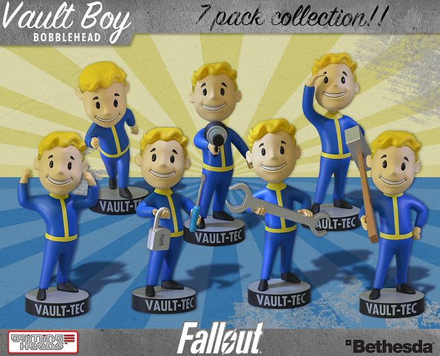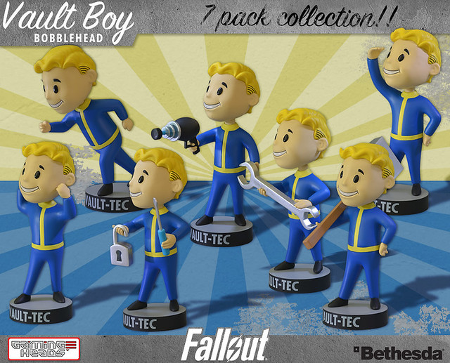 玩過開放世界觀RPG神作異塵餘生3(Fallout)的朋友一定都認識避難所男孩(Vault Boy)。在遊戲中,避難所男孩是避難所科技公司的吉祥物,他不是遊戲裡的角色,而是做為廣告或操作介面的圖示存在。玩家最常看到的就是技能選單上的避難所男孩圖示,而本次Gaming Heads就是以此設定推出七種搖頭公仔,不同的姿態分別代表了「力量」「耐力」「能源武器」「維修」「解鎖」「近戰」以及「感知」能力。喜歡這款遊戲的朋友一定很開心開發了這項企畫,每款高約5英吋,美金售價14.99元。全套購買特價只要79.99元,預計2013年聖誕節左右推出,提供給大家參考!
