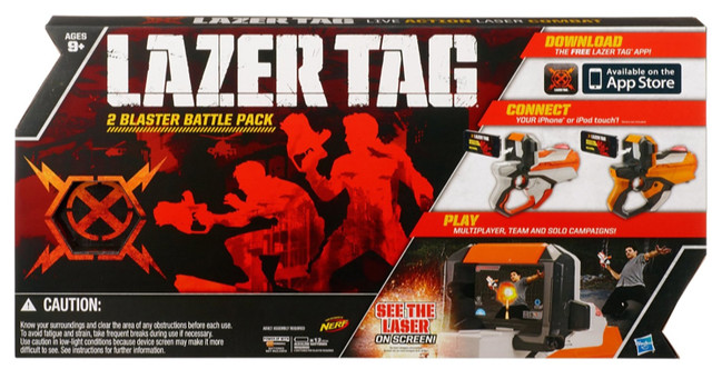 在2009 年的一個玩具展上,玩具大廠孩之寶(Hasbro)公司將以製做雷射槍玩具聞名Lazer Tag 公司併入旗下火紅的泡棉彈氣槍玩具NERF 品牌的旗下,NERF 品牌包含了NERF N-STRIKE ELITE、NERF VORTEX、NERF DART TAG blasters 等等經典且火力強大的泡棉彈氣槍玩具品牌,而在加入了NERF LAZER TAG blasters 之後更將進軍虛擬戰鬥的領域,並且推出了一款免費配套的LAZER TAG app 遊戲軟體。儘管這個已經是去年推出的作品了,不過它可被認為是2012 年最火紅、最受歡迎的玩具商品之一喔!唯一比較可惜的地方是,目前還是只有iphone 4/4s 系列的手機及系統才能玩,真希望孩之寶公司在NERF 品牌下推出更多的相對應套件以及遊戲軟體的更新。