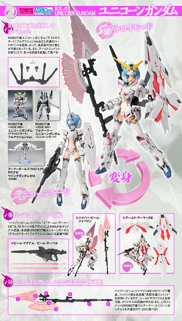 日BANDAI萬代玩具公司的AGP MS少女 系列商品預計明年2014年3月推出アーマーガールズプロジェクト MS少女 ユニコーンガンダム,MS少女 獨角獸鋼彈版本(暫時翻譯),由獨角獸鋼彈設定角木肇老師和MS少女設計師明貴美加氏一起合作開發,和獨角獸鋼彈故事劇情一樣 MS少女獨角獸鋼彈版本的型態可以呈現獨角獸型態和一般模式型態。
