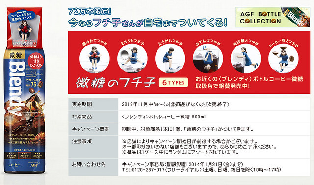 並且為了宣傳出任宣傳大使一事,還特別成立了專屬的宣傳記者會網站(www.agf.co.jp/blendy_bottle/fuchico/),除了介紹之外也建議了(誘導)拍攝(惡搞)的相關技巧。相當有趣喔!~各位喜愛杯緣子的玩具人,千萬別錯過了!