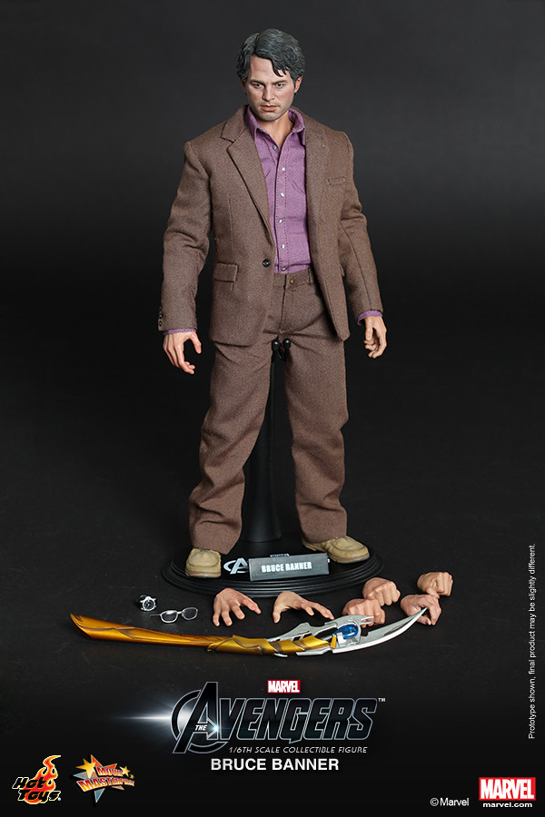 除了由Hot Toys 天才頭雕師Kojun所精心打造、逼真的“馬克·盧法洛”(Mark Ruffal)頭雕之外,還將附有招牌的紫色襯衫與咖啡色西裝造型,以及可監控血壓的手錶、工作造型的眼鏡以及在「復仇者聯盟」成員爭吵達到最高峰時,班納博士無意間拿起的奇塔瑞權杖(Chitauri scepter)並且也特別設計了能夠對應這些精緻配件的手部替換零件,讓各位玩具人能夠充分重現原作的場面。