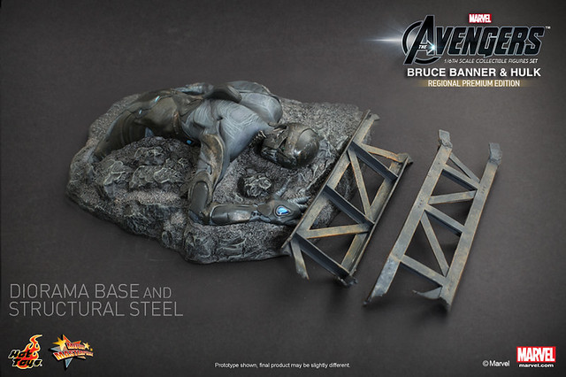 隨著MMS290 班納博士的發行,Hot Toys 也推出了特殊的班納博士 & 綠巨人浩克 套裝組合。這一款同捆組合,包含了一款MMS290 班納博士的所有內容,以及一款MMS186 綠巨人浩克,並且還將追加一個奇塔瑞步兵屍體的造型地台,以及兩個對應浩克的扭曲鋼骨零件。