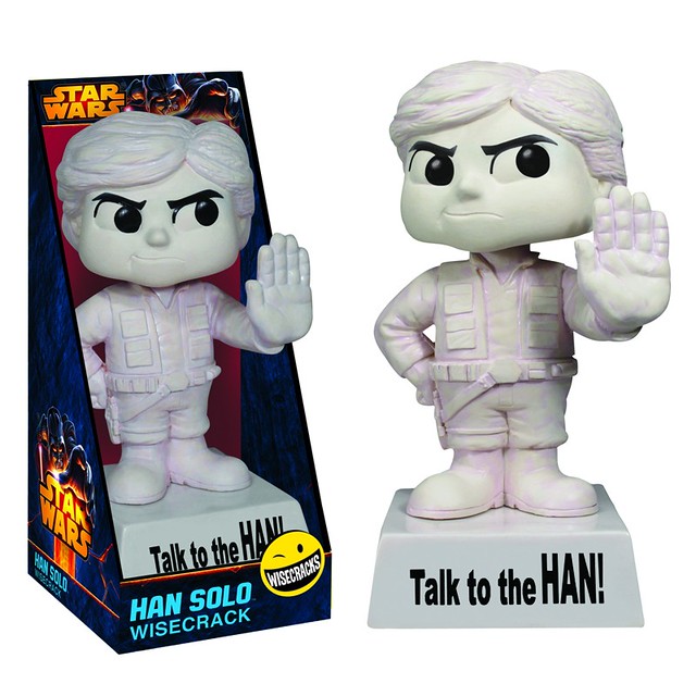 小編認為除了POP! 系列之外,FUNKO 公司最有才的一個系列就是WISECRACK 系列了!而這個系列最主要走紅的作品就是「星際大戰」(Star Wars),逗趣的星際大戰人物角色搭配著特殊標語的底座,放在辦公桌上超級療癒的!而這次FUNKO 公司又要再推出兩款超療癒的配對組合:千年鷹號的艦長「韓索羅」(Han Solo)與229 公分高的大副「秋巴卡」(Chewbacca)。其中,「秋巴卡」的底座寫著「年度最佳武技族戰士」(Wookiee of the Year)更是好笑到不行。有興趣的玩具人可千萬不要錯過這一對療癒的二人組阿!