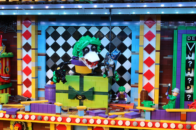 歐美的樂高玩家Paul Hetherington,利用樂高打造出了一款生動的「蝙蝠俠」作品,利用小丑的秘密基地為主題,製作了“Joker's Funhouse”,在今年樂高積木展覽會BrickCon 上贏得「最佳作品」(Best in Show)。
