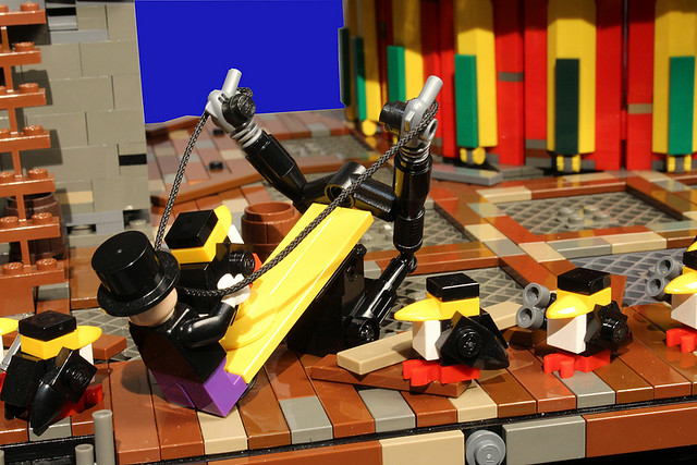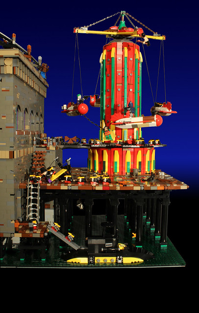 這一款作品除了傑出的場景造型之外,還利用了LEGO 積木動力馬達Lego Power Function Motors,製作出了生動的動態,重現毒藤女血盆大口的植物、謎語人的字謎、即將掉入酸液池“洗澡”的高登局長、企鵝人發射企鵝來攻擊,以及主角小丑轉動著巨大的機關襲擊,而蝙蝠俠與羅賓企圖阻止這些反派詭異的恐怖玩笑。