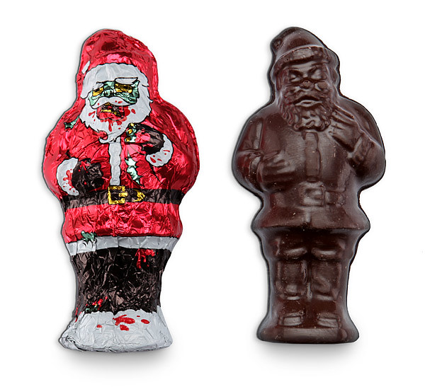 因為這些原因他們想出了把兩個相似角色元素組合的「僵屍聖誕老公公巧克力」企畫,我是不知道小孩子收到會有什麼反應,所以您要送出前可真要三思啊!