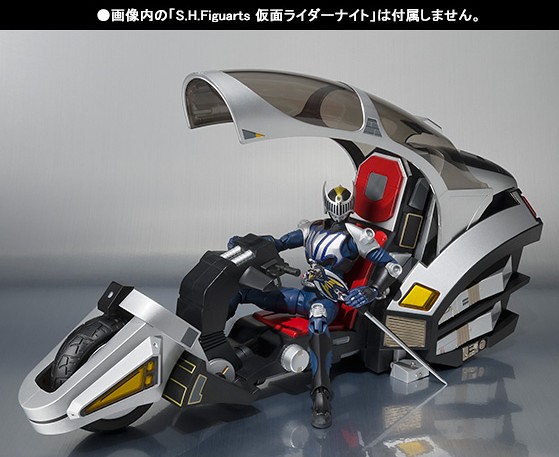 這次將在魂線上商店受注生產2013年10月25日(日本時間)開始接單,假面騎士 龍騎用的機車尺寸長約29公分,售價約8400元日幣,配備有開啟機車護罩的聯動裝置等等,有收集S.H. Figuarts假面騎士 龍騎系列的玩具人可以考慮購買一下。