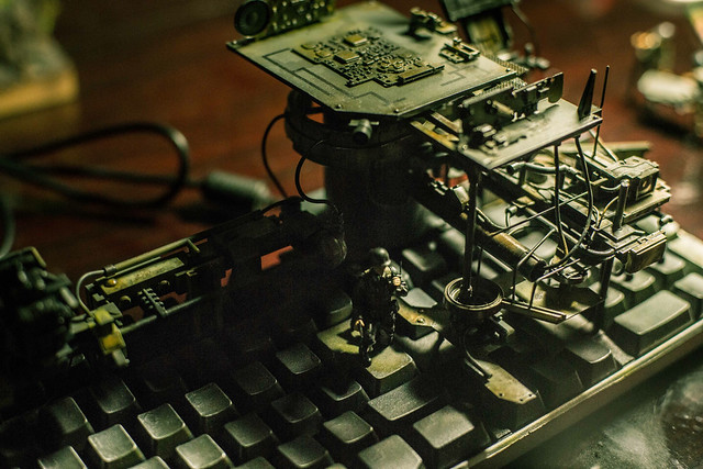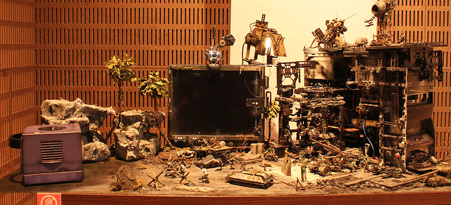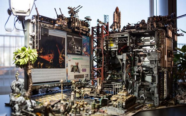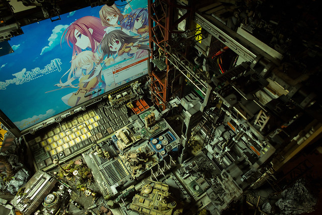 今年才剛從多摩美術大學情報設計系畢業日本模型製作玩家“池內 啟人”(IKEUCHI Hiroto)巧妙底利用了模型與電腦主機、螢幕結合,打造出了一個精彩的空想具現化場景,獲得日本第17回媒體藝術祭“娛樂部門”優秀賞!