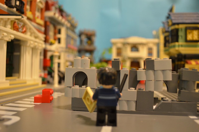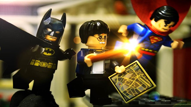 手邊剛好有幾座樂高城市的建築加上有哈利波特的人物,就直接拿來套成魔法大戰的英雄救美小短片了。