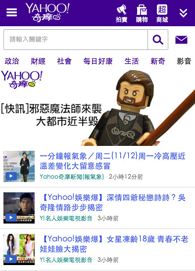 下面一張是這次的YAHOO手機版網頁截圖,當然,這張是修圖過後的XD