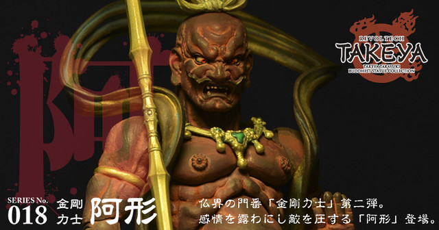繼「金剛力士 哞形」之後,海洋堂可動佛像「REVOLTECH TAKEYA」系列,推出了佛教真言裡象徵起始(開口起音)與結束(閉口結尾之音)的金剛力士 第二彈「金剛力士 阿形」。