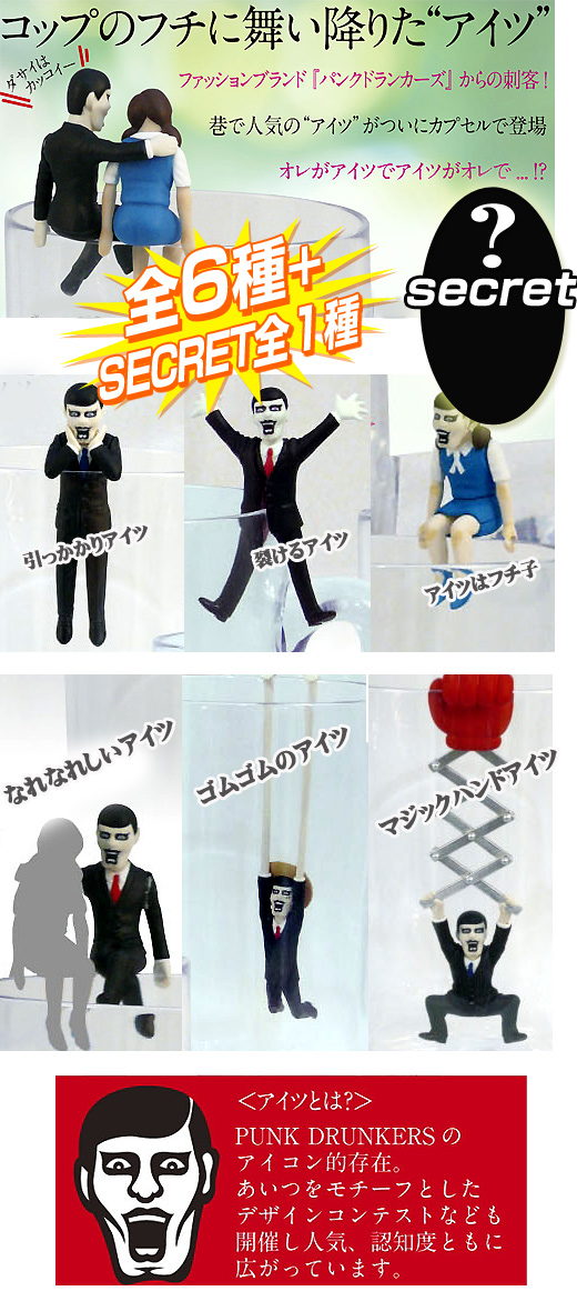 這一款商品是與充滿反骨、惡搞精神的日本知名品牌“PUNK DRUNKERS”合作,將品牌知名的肖像化作惡搞杯緣子的變態角色,充分展現了惡搞精神!