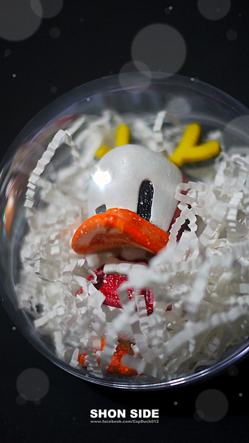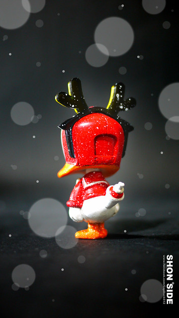 台灣新興的玩具設計師SHON SIDE 原創的CAP DUCK 這次被小叮噹的縮小燈照到了,設計師SHON SIDE 將推出最新造型的CAP DUCK 作品「CAP DUCK 麋鹿鴨」(CAP DUCK El)。這次SHON SIDE 所推出的CAP DUCK 作品除了採用拿手的純手工打造的小鴨造型搭配壓克力片的切割來呈現作品的立體感之外,更採以水晶球的包裝方法將這款「CAP DUCK 麋鹿鴨」作品呈現給各位玩具人,透過紙片的搭配,讓整個水晶球包裝內有如雪景般的氛圍出現在各位玩具人眼前。