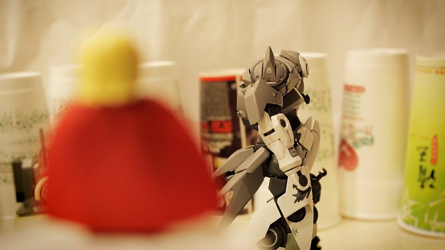 一開始是要用MG GN-X做壞人,體型也夠大夠帥,主要是愛那顆大眼睛,想要把它設定成索爾1的Destroyer眼睛噴光束的感覺。