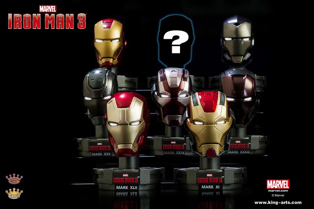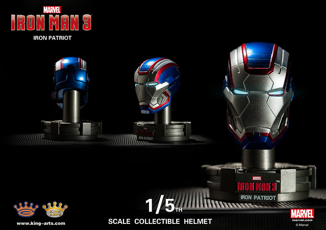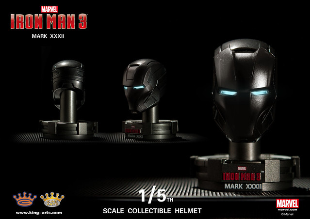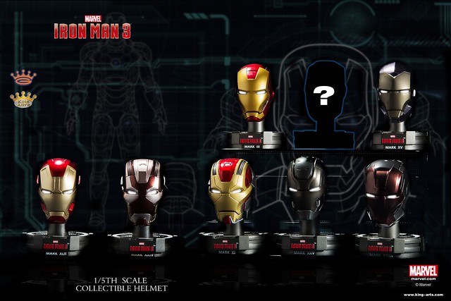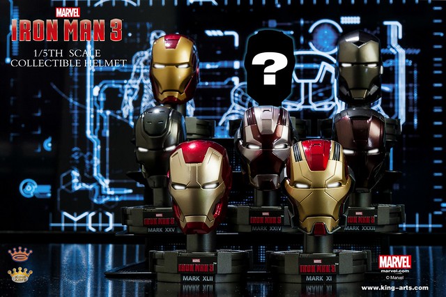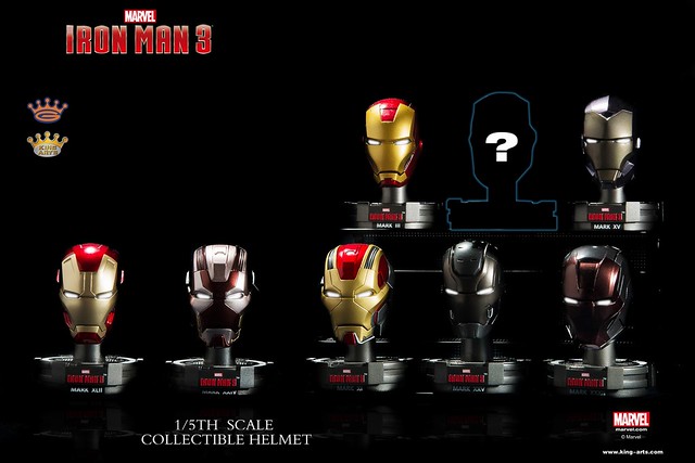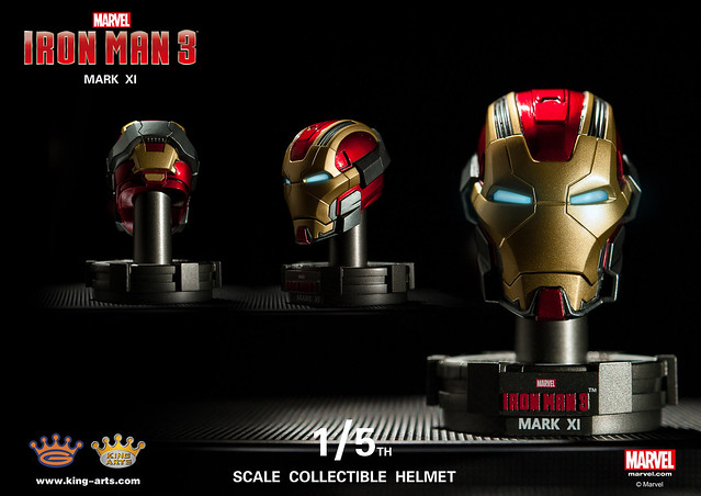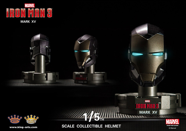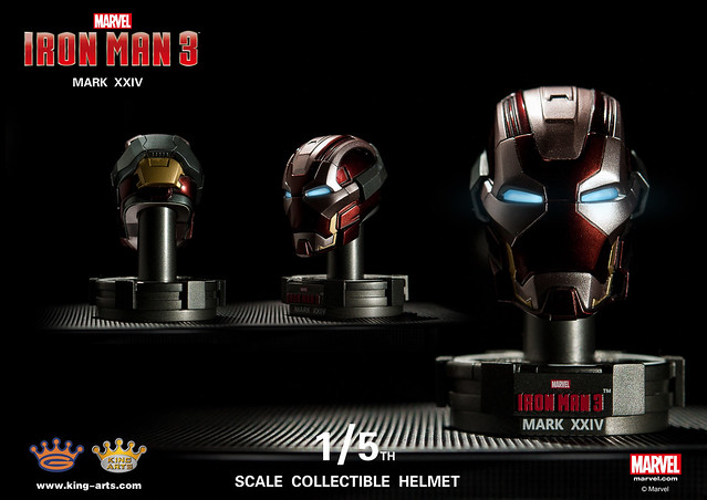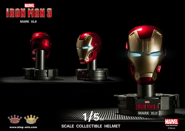 香港新興廠商「King Arts」宣布將推出首波商品“鋼鐵人3:1/5 比例鋼鐵人高級頭盔系列 ( 第一彈 )”。本作的最大特色在於採用了高光金屬漆與磨砂金屬漆,打造出完美的立體感,並且使用拋光金屬保護塗層確保表層耐磨。除此之外,頭盔的眼部使用了精準背光亮燈技術,確保亮燈後不會出現散光。