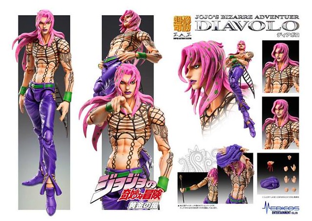 日Medicos玩具公司的超像可動系列終於公佈即將在2014年4月發行JOJO冒險野郎 第五部 反派“老闆”迪普羅(ディアボロ)的官方宣傳照片,在JOJO冒險野郎第五部故事中黑幫的老闆與創立者,擁有特別的雙重人格,當另外一個性格出現的時候連體型和說話的方式都會變成“多比歐”,迪普羅在故事中性格非常的冷漠與無情,會利用一切可以利用的,也會毫不猶豫的要手下去死,並且有著「永遠要站在頂點」的想法,意圖將自己的過往的經歷全部抹殺掉,並對想要調查自己真實身分的人都會毫不留情的殺害。