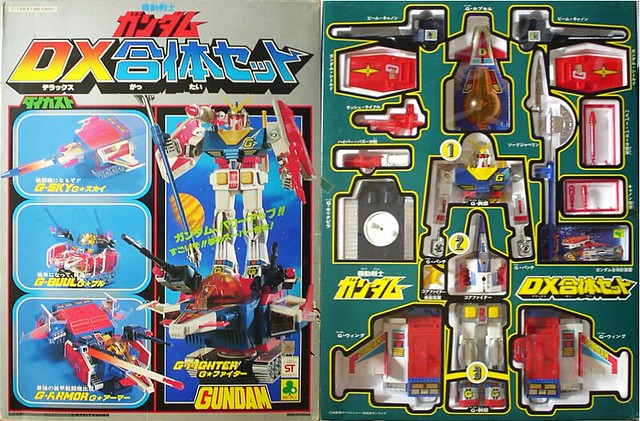 另外一個例子就是1980年發售的「鋼彈DX合體組」,這個合體組裡面除了鋼RX-78-2鋼彈本體之外,還追加了可以變形合體的G戰機,可玩性相當豐富。不過,當成玩具可以,但以一款寫實兵器來說,設計上實在是太瑣碎了。再加上肩上的火箭砲、附有斧頭的尖槍、以及可以發射的拳頭等等,怎麼看都覺得那裡怪怪的,讓人覺得全身不對勁。現在來看,這算上是一個時代的眼淚。(XD)不過,怪歸怪,這款鋼彈玩具現在也已經是天價了啊!~