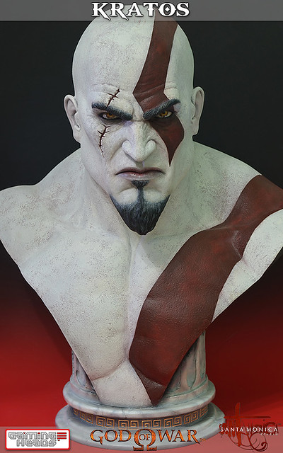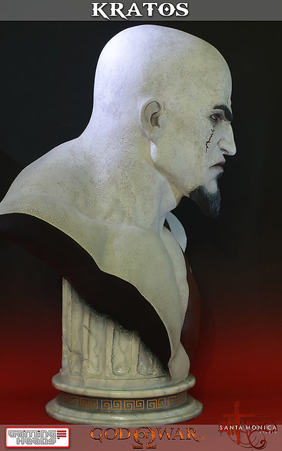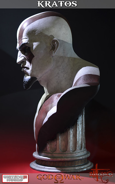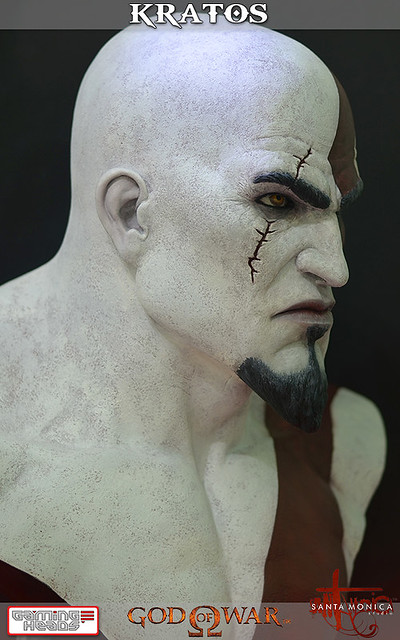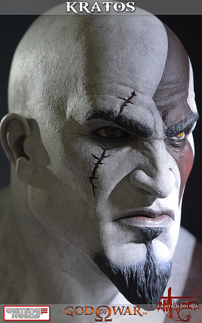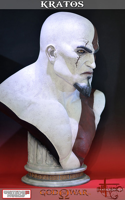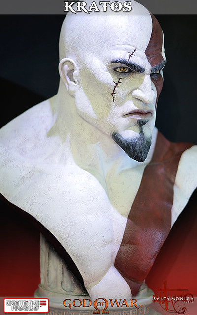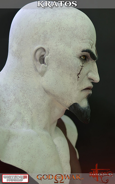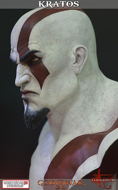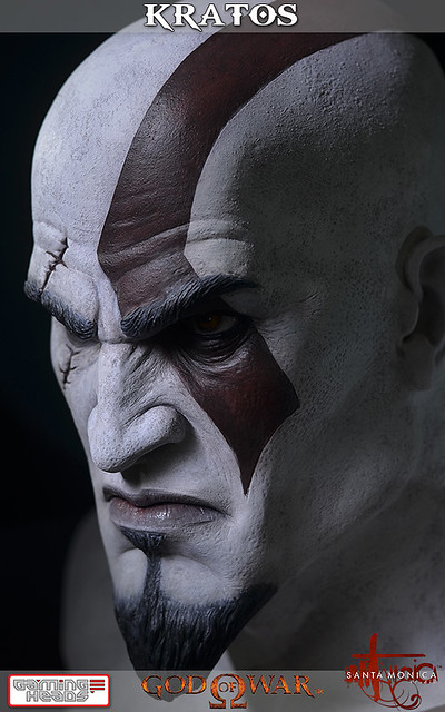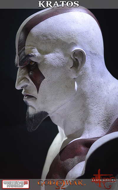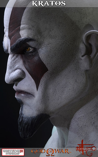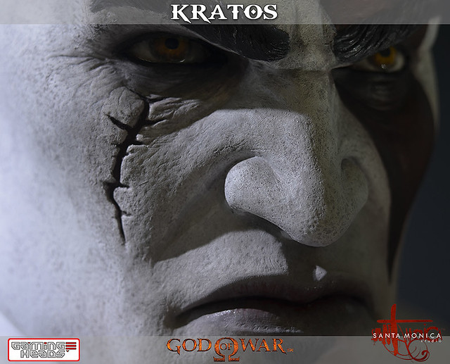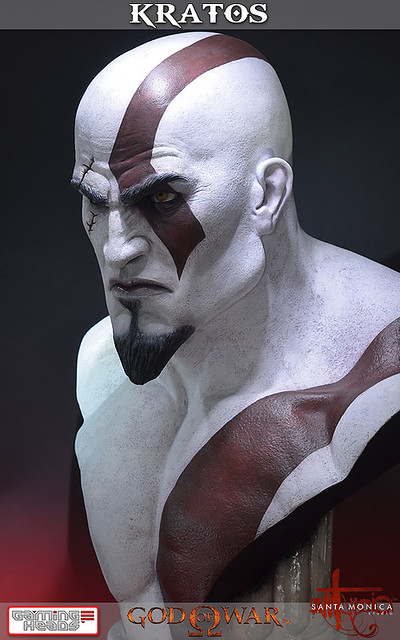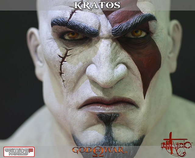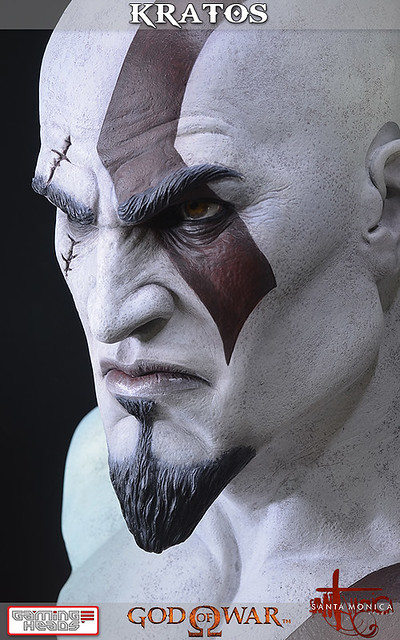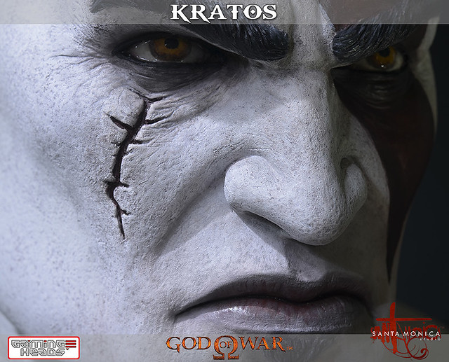 近日擅長製作電玩周邊的GAMEING HEADS推出了一款戰神Kratos真人比例胸像(Kratos Life Size Bust),傳神的立體再現Kratos的面容,在肌膚紋理上以超高水準的技術製作,讓胸像彷彿真人就在眼前。胸像姿態微微前傾,就像遊戲裡的戰鬥姿態。受詛咒的蒼白皮膚以及憤怒凝視的神情,述說著Kratos受命運與眾神操弄的因果。