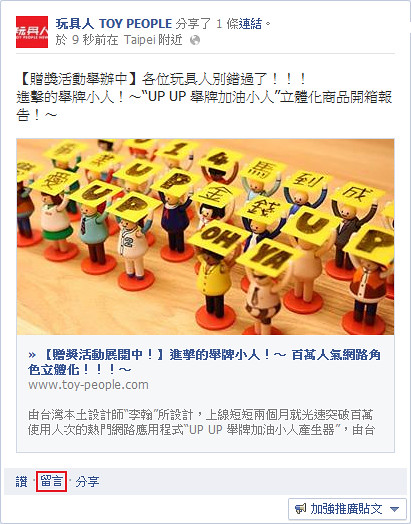 2.「玩具人 TOY PEOPLE NEWS Facebook 粉絲團」上側。