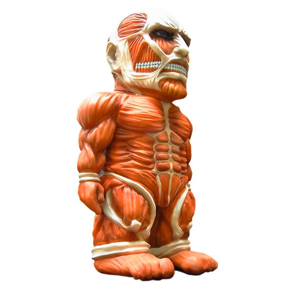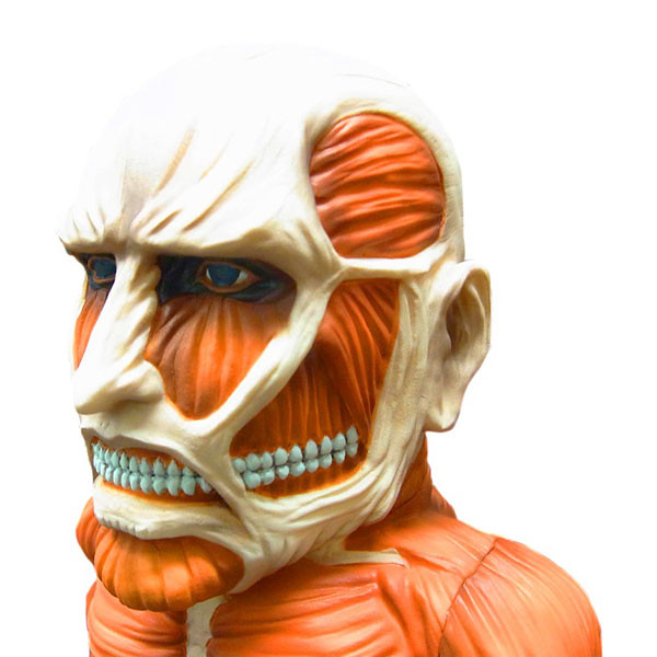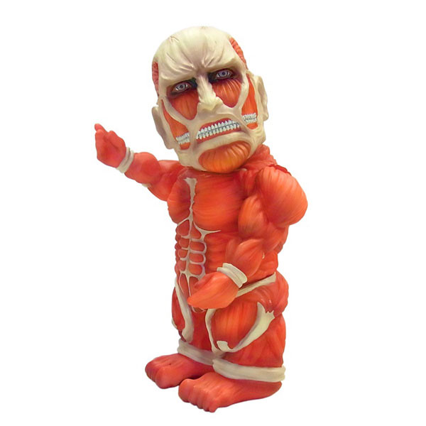 持續受到歡迎的人氣動畫進撃の巨人其周邊產品也不斷推出新品,這次預計在2014年4月推出進撃の巨人 超大型巨人 ソフビフィギュア 進撃的巨人 超大型巨人 搪膠材質公仔(軟乙烯基)暫時翻譯,身材以略為Q版比例呈現,脖子和兩個手臂可以活動,尺寸高約有20公分,售價約5184元日幣,提供給喜歡進撃的巨人的玩具人參考。