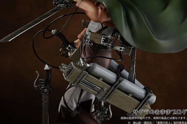 這一款1/7 比例“里維”具有複雜、充滿細節的造型,尤其是細節繁瑣的“立體機動裝置”,講究地充實呈現每一個零件。除此之外,飄逸的披風與冷酷的神情完全掌握了“里維”兵長的角色特質,這絕對是《進擊的巨人》不容錯過的精彩作品,推薦給各位!