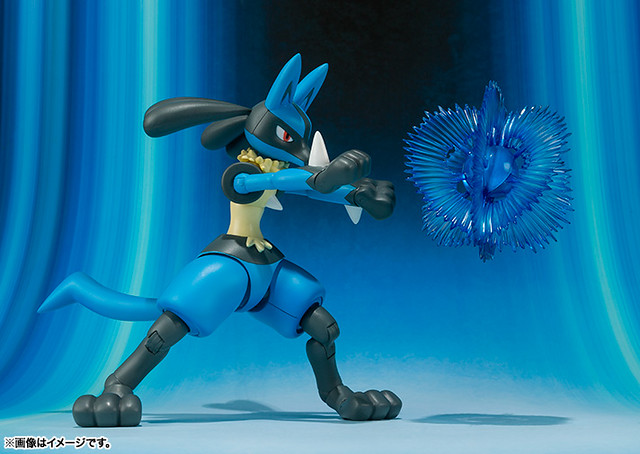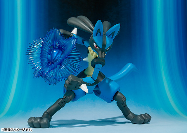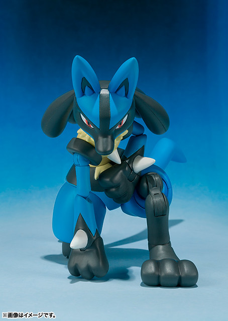 日Bandai萬代玩具公司的S.H. Figuarts可動系列預計2014年5月發行POKEMON – Lucario(ルカリオ)路卡利歐,來自神奇寶貝動畫的第八部劇場版《夢幻與波導的勇者 路卡利歐》的主要登場角色人物 路卡利歐,之前都以D-Arts 可動系列來推出POKEMON(神奇寶貝)系列,這次以S.H. Figuarts可動系列來呈現路卡利歐,尺寸高約有14公分,附有交換用瞳パーツ2種・エフェクトパーツ・和専用台座等等配件,售價約4,000元日幣,喜歡神奇寶貝可動系列的玩具人可以參考一下。