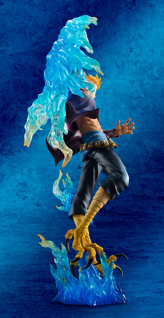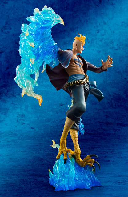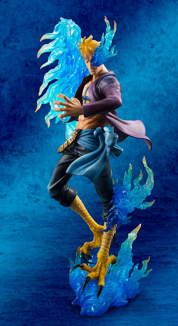 近日MEGAHOUSE公佈P.O.P"MAS"系列第3彈為展現變身異能的不死鳥馬可。相較先前作品,異能火焰的面積更大,變身中的馬可右手幻化成蒼藍火焰的翅膀、雙腳也幻獸化,凌空而起非常有視覺張力。蒼藍的火焰半透明材質相當優異,除了藍色,也隱約透出黃色、綠色漸層,就像幻獸之名一樣十分新奇炫麗。本作品以1/8比例製成高約25公分,日幣售價8800圓(未稅價),預計2014年6月推出,提供給大家參考!