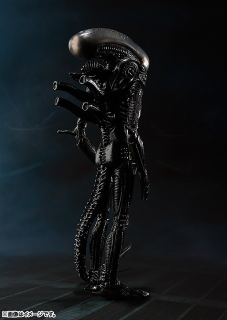 日BANDAI萬代玩具公司的S.H.MonsterArts 可動系列預計2014年5月發行S.H. MonsterArts Alien Big Chap,以經典科幻電影Alien 異形當中出現的造型呈現,這次S.H.MonsterArts 系列的開發團隊,將頸部的可動關節加強製作出來,另外腿部和腹部也擁有更多的可動關節,讓玩家可以擺出異形更多動態的姿勢,也使用透明材質來表現特殊長形的頭部,內部的骨頭構造都可以清楚看見,嘴巴可以張開,讓口腔內的第二口器也可以伸出來攻擊,附有支撐支架和底座、可以替換用手掌等等配件,尺寸高度約有18公分,售價約5,940元日幣,喜歡S.H.MonsterArts 可動系列的玩具人可以參考一下歐。