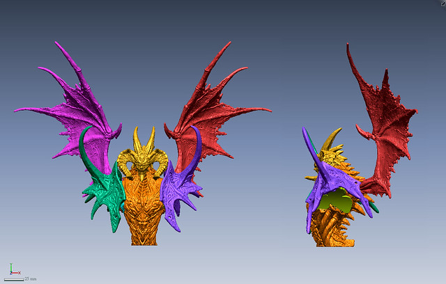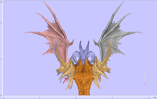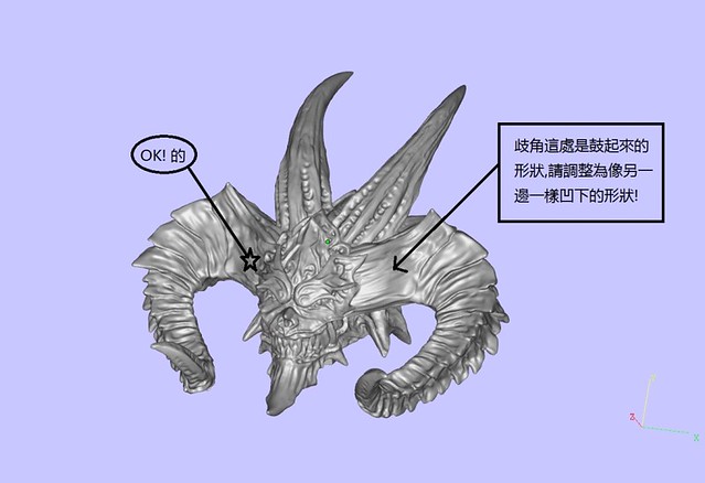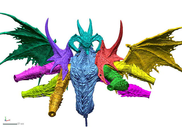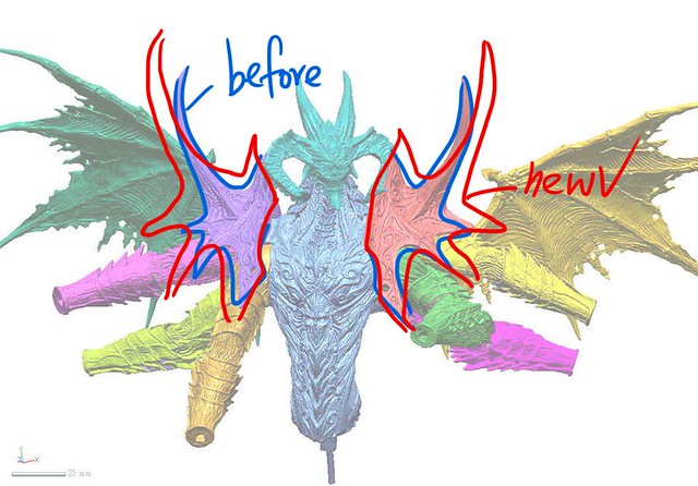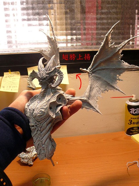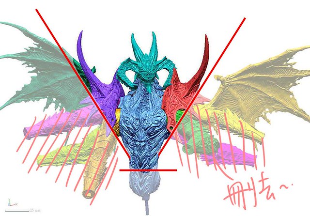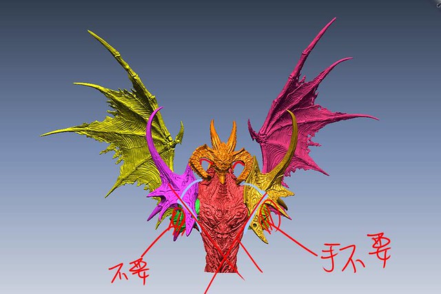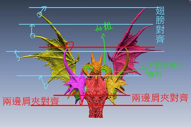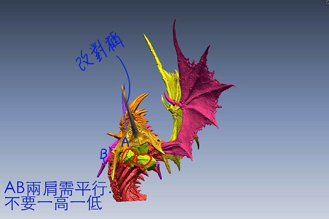 但 PKKing 似乎仍不滿意啊! 再次要求細節的修改 … 像是手臂的切割,翅膀的對稱 …等等。再次調整及決定需要的模型大小尺寸 後… 開始輸出3D列印。