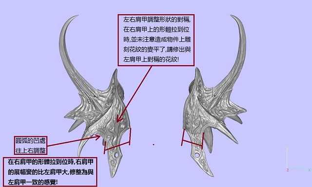 2013.12.30 PKKing 驗收,圖片上無法確認的細節,淘汰了頭及右肩甲 …修正問題的反饋 … 最後的在電腦上造型細節的完成!