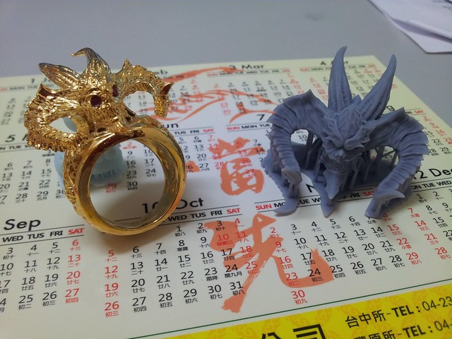 另外還有小插曲 …九天衡-巨獸 Barretta 變成戒指了! 3D列印的輸出蠟質模型…金工鑄造… 戒指。