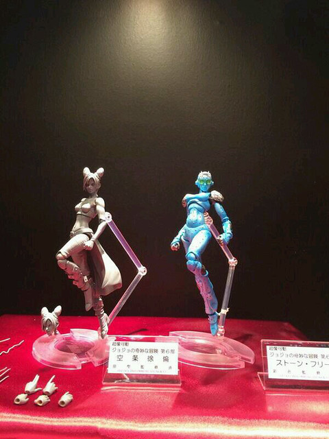 在2月9日於日Wonder Festival 2014 Winter展覽上Medicos玩具公司的超像可動系列,在其攤位上終於公開了第六部JoJo冒險野郎石之海的主要角色人物 空条 徐倫和其替身石之自由,在JoJo冒險野郎系列漫畫中唯一一部以女性為主要角色的石之海,另外也公開了第五部JoJo冒險野郎黃金之風故事劇情後面 喬努諾的替身進化成的黃金體驗鎮魂曲造型,目前都只公開樣品照片,提供給喜歡Medicos的JoJo冒險野郎 超像可動系列的玩具人參考。