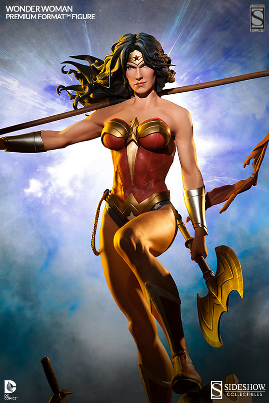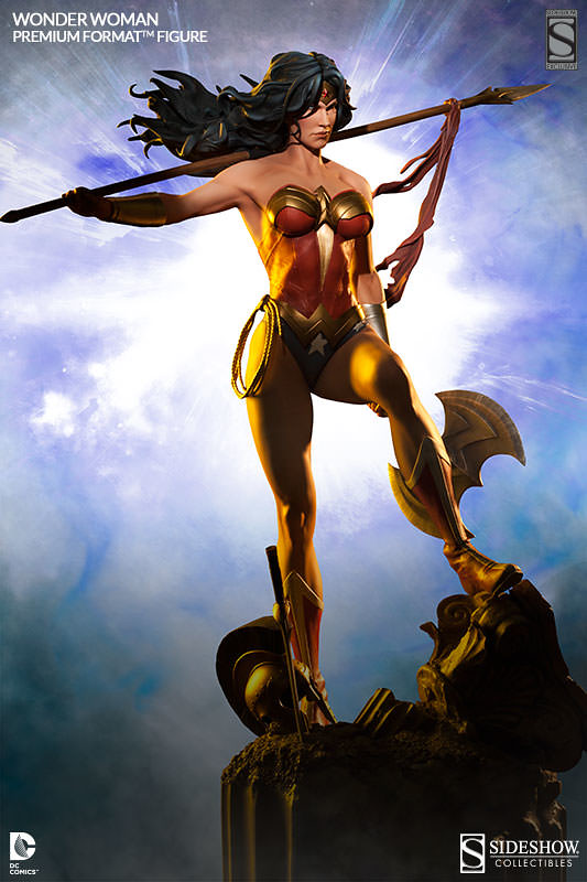 《神力女超人》擁有超人般的神力,蝙蝠俠的智慧,使得她被人們推崇,與超人、蝙蝠俠並列“世上最佳三人組”(The World’s Finest Trinity)。這一款由Sideshow 所推出的雕像,除了忠實呈現Wonder Woman 健美的體魄、美麗的容貌之外,也完整的呈現了的戰鬥民族“亞馬遜”女戰士的堅毅、自信神情。本作將推出兩種不同的版本,普通版與Sideshow 限定版;限定版本將追加一個替換零件,可將持盾手替換為持戰斧的造型。