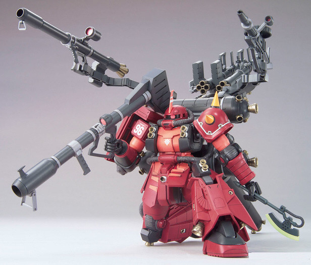 「MS-06R 高機動型薩克」是使用基本的薩克II F型(MS-06F)為基礎,為全廢除陸戰能力、宇宙空間使用特化的高機動型。背部、腳部以外的造型與過去的薩克II相同,但其實從框架到熱核反應爐...等,內部構造都大幅的變更,是完全不同的機動戰士(Mobile suit /簡稱為MS)。由於大幅提昇推力而造成推進劑的激烈消耗,導致活動時間比夏亞專用的S型還短。雖然是一個難以駕馭的機體,但由於相對的表現而令其成為王牌駕駛員們喜愛的機型。此外,MS-06R 還因此派生了7種不同的特殊機型與後繼機種,成為問鼎吉翁公國主力戰機的款式。