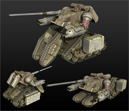 ▼ 出現在外傳故事《重力戰線》的RTX-440 陸戰強襲型鋼坦克,變形機構可因應不同任務需求而進行調整。