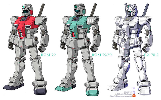 除了這些以量取勝的砲灰兵團之外,以鋼彈為名的MS試驗機,也悄悄活躍於一年戰爭的各個戰場,包括RX-78四號、五號、六號、七號機、大戰末期為了阿姆羅而特別開發的新人類專用機RX-78NT1,以及活躍於東亞戰線的RX-79[G]陸戰型鋼彈等等。每一架鋼彈都有其獨特的性能與用途,也為鋼彈世界龐大的故事體系展開了無限延伸的戰場。