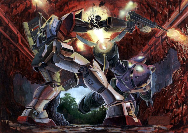 鋼彈登場時,一年戰爭已經打了九個月。由於吉翁軍使用神經毒氣及殖民地武器等強硬手段奪得先機,再加上「米諾夫斯基粒子」干擾技術,(這個神奇的粒子我們以後有機會再來好好解釋)以及利用MS快速打擊的靈活戰術,將崇尚「大砲巨艦主義」的地球聯邦軍打得落花流水。
