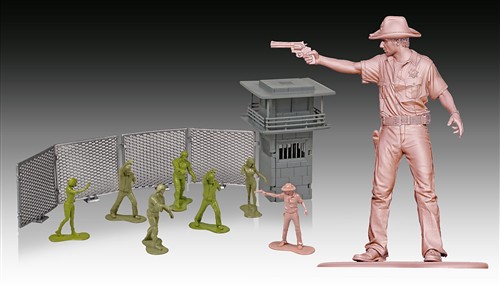Gentle Giant近日公佈了陰屍路(THE WALKING DEAD)迷你兵人系列第3彈,承襲上一彈的劇集時空背景,但場景切換到了危機四浮的死亡監獄,瑞克一身警長服裝擺出了劇中的招牌開槍姿勢,雖然尺寸迷你但細節非常細緻傳神。除了監獄場景外,還配有6隻殭屍,特別是監獄篇的經典代表「獄警殭屍」也收錄了!搭配上一代一起組合遊玩相信會非常過癮!本套組採限量發售,美金售價22.99元,預計2014年第4季推出,提供給大家參考!
