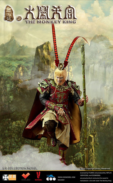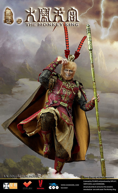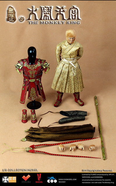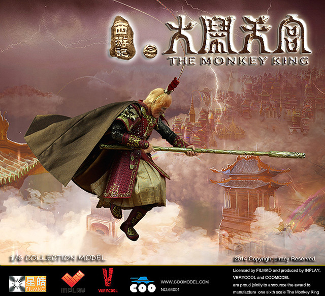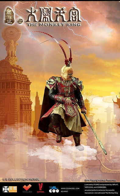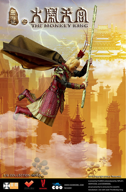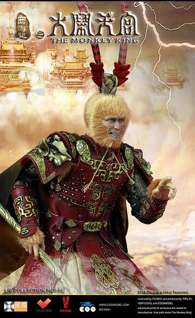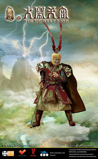 【西遊記之大鬧天宮】集結了周潤發、甄子丹、郭富城等眾多巨星並耗時數年後製拍攝而成,其中甄子丹詮釋影史上被演繹多次的齊天大聖一角表現格外引人注目。近期網上也公佈了由星皓娛樂官方授權、COOMODEL所製作的1/6比例人偶,官方造型特效化妝頭雕相當傳神再現,戰袍細節非常細緻,大聖招牌武器「金箍棒(定海神針)」製作也毫不馬虎,整體完成度相當不錯!配件明細如下,近期官方將公佈預購資訊,預計2014第4季推出提供大家參考。